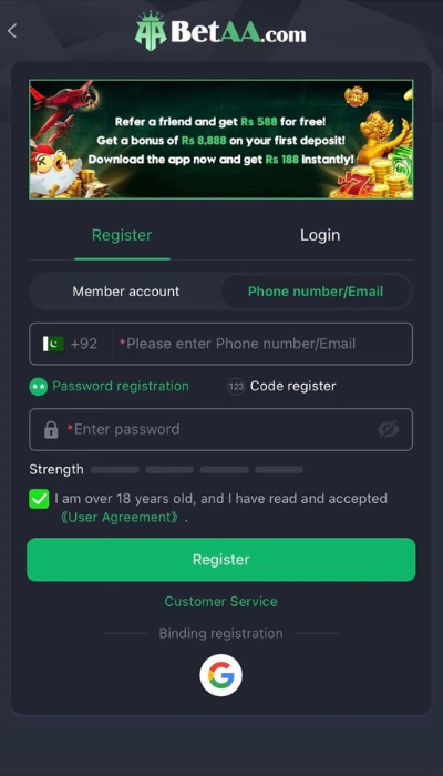 After registration, users can access all games and features available on the platform.