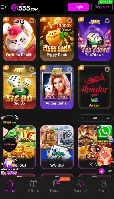 Just like other trending apps such as Teen Patti Master, ZK688, or King of Pop, G 555 allows players to win: