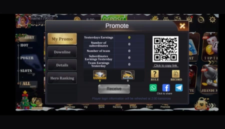 Users can invite friends and earn commission when referrals join and play.