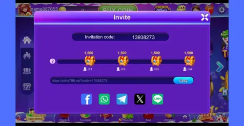 Users can invite friends through a referral link and earn rewards when invited players join and play.