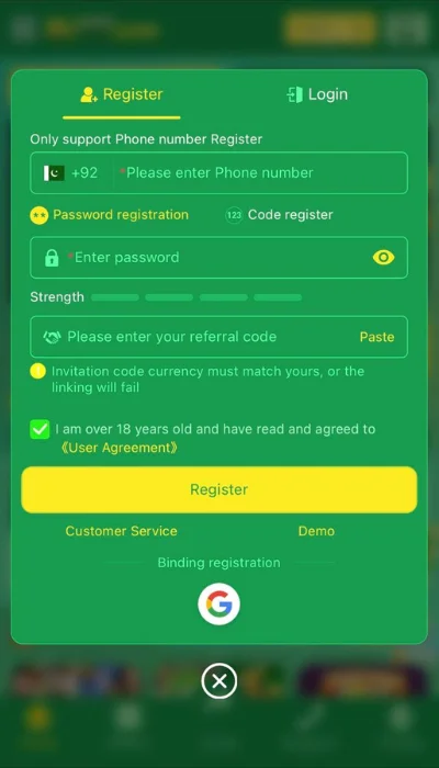 - After installing the MJ77 game APK, open it, and you will see a registration page in front of you.