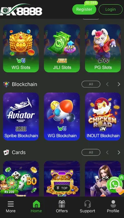 Players can enjoy slots, card games, colour prediction games, and live casino experiences.